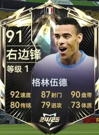 赛季之星格林伍德:91总评分给到右边锋的主注册位,对比球会之前转会主题的87的格林伍德,评分涨了4分,球员模型方面对于边锋球员来说还是不错的,185cm身高模型,可以在边路进攻时能给到一定的争顶和对抗能力,再加上新赛季的给了重炮轰门和灵巧步伐的崭新技能,对于突破方面可谓是锦上添花。英格兰队套毕业的右边锋球员。