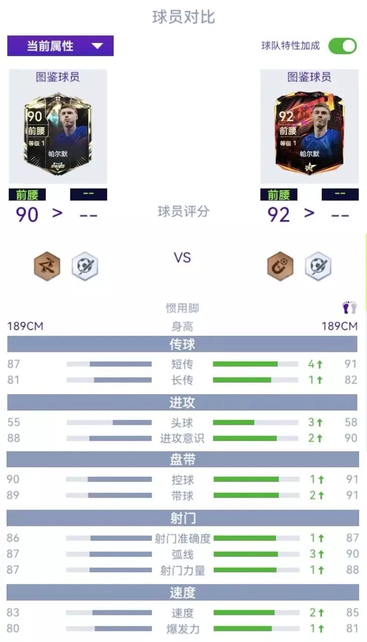 赛季之星帕尔默:90的总评搭配灵巧步伐和手术刀地面传球技能。数据方面也是很不错的一张毕业球员。对比以前92的24年度帕尔默来说,数据方面看出稍微差点,但是主数据属性也没有差太多,总体来说个人建议还是推荐新的赛季之星90帕尔默。性价比高,评分低好升星,值得入手。