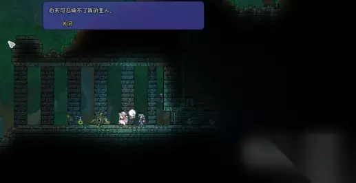 再一个就是骷髅王,在地表有一个名为地牢的建筑,在打败 骷髅王之前不要贸然下去探索,不然你会死的很惨。召唤boss的方式是在 夜晚与地牢入口处的老人 NPC 对话并激活他的诅咒即可召唤出它。如果你白天来,他会告诉你打不了。打败之后就可探索地牢了