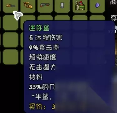 如果商人来了的话可在商人处买一个猪猪存钱罐用来存钱,当你有了33个金币的时候可在武器商处买到前期神器-------迷你鲨。