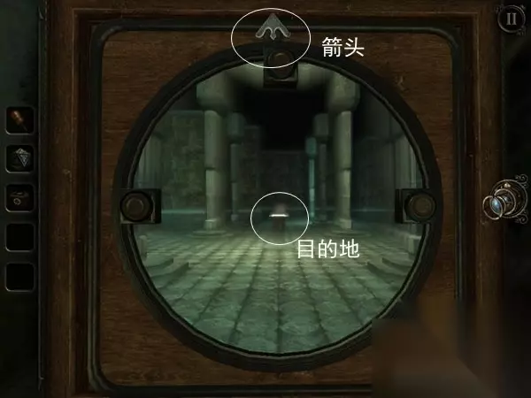 在里面,你要通过前、左、右三个按钮一步一步前进至箭头指着的方向,最后走到神殿目的地前,重塑机就会打开盖子,让你获得第三台放映机的“钥匙。