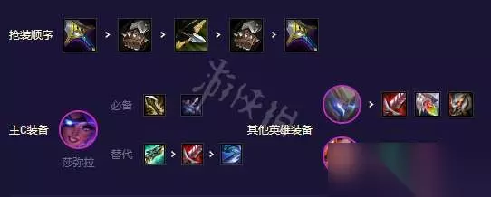 莎弥拉无尽轻语必备打伤害,科技枪一个是增加她的生存能力一个是可以给盖伦回血增加坦度。盖伦饮血救赎泰坦三件到能抗能打能恢复。出正常的龙牙和反甲反而没有多大的作用。 阵容站位