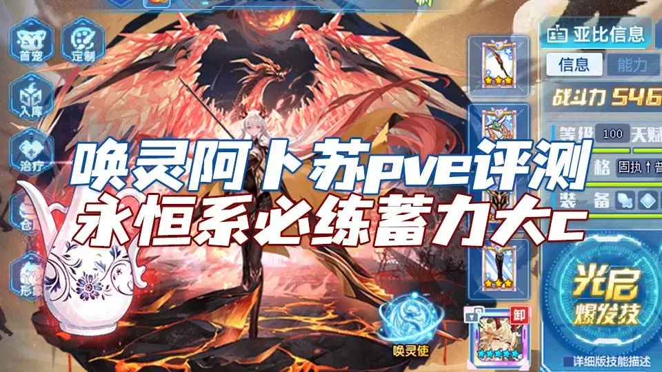 简单评测下本周唤灵阿卜苏,强度很高,蓄力队也是官方目前的主推体系之一,打61刚需阿比斯辅助,因为很需要阿比斯拉梅比开星环结界辅助。 更多boss攻略会持续更新,…