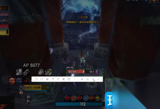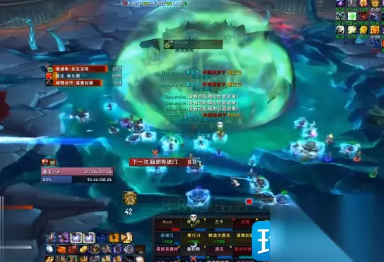 P2阶段团长安排的猎人是进最远的一个门,因为猎人有个后跳可能灵活一点,而且这个P2在猎人在内场打这个小怪的时候,有的时候你需要注意一下你的朝向,那个骷髅头是会降你的心智的,然后还要注意这个大触手,这个大触手猎人的宝宝是不能上的,因为这个大触手会攻击所有近战范围的,那坦克也不需要在这。你只需要第一优先级把那个抓人的触手打掉,那个触手血量很低,第一时间打就可以了,把他打掉也就一万多的血,碰他一下基本上就掉了。然后其他时间再去抓这个大触手,打触手的话能打就打,不能打的话你就不用管。 然后还有注意这个阶段是需要这个尽量集合,就是会豹子会点名两个人在连线,如果这个两个人连线超过20码会不断掉。然后还有刚刚我中了一个死亡凋零这个技能,他会又丢一个死缠把我往外丢,丢我的时候如果我附近有别人他会传到另外一个人,所以你要保证既要分散又不能太重合,就是既要重合又不能太分散,这个时候因为旁边有一个这个大触手,但我经过大触手的话也很有可能会被大触手拍死。所以我绕了一圈才过来打这个门,就要尽量做好保命。