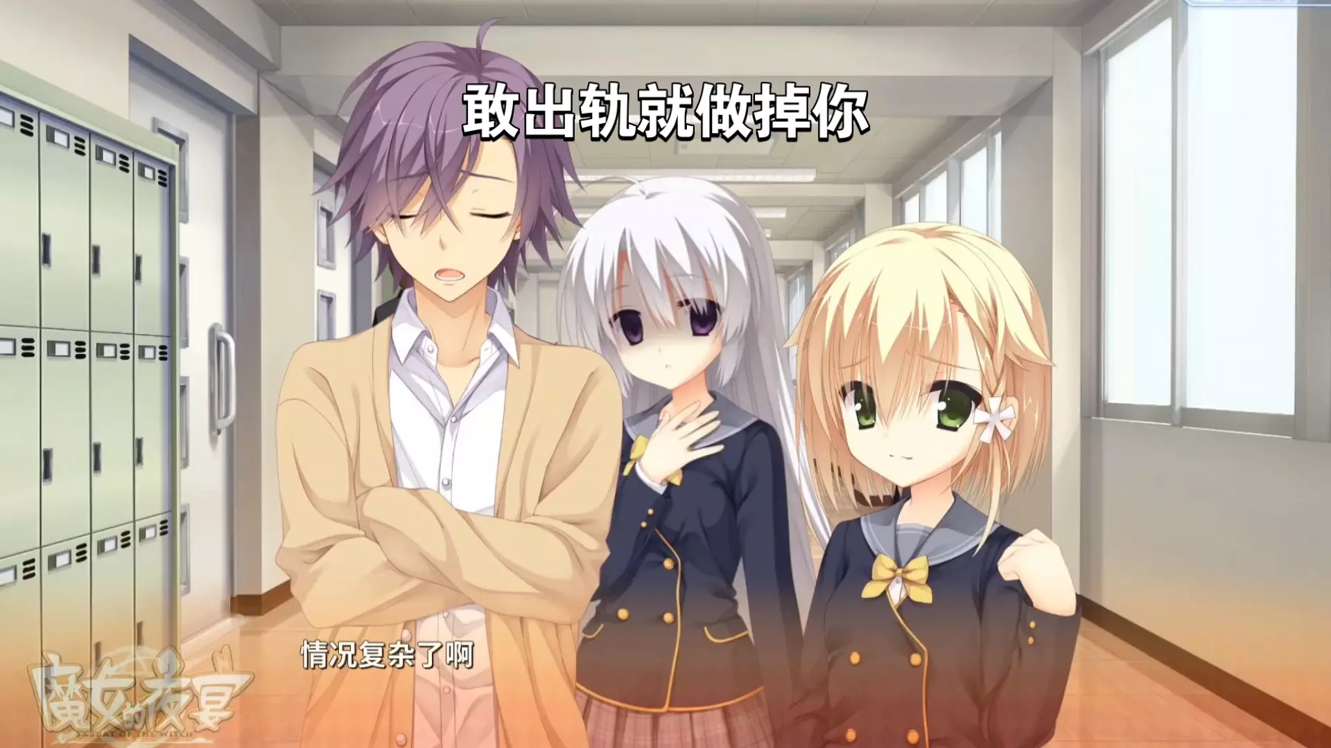 这是柚子社相关游戏内容,展示了主角昂晴和校花手拉手进学校后,在教室中和兄弟们的趣味互动对话,兄弟们给出了诸如“有罪。死刑”等调侃式回应,氛围轻松有趣。