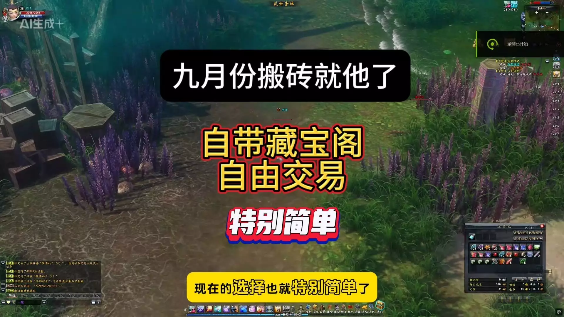 九月份搬砖我就选它了,自带藏宝阁,自由交易搬砖无忧
