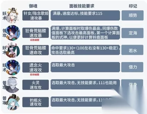 其中SP荒川、SP金鱼姬为可替代式神,换成其他水系式神更好,例如海忍(锁3技能)海坊主普攻会动画更快,同样的提供攻击面板也有所缩减,需要试炼式神高面板才可以替换,不追求极致通关速度的可以使用SSR/SP工具人。 四、技能buff 柔风抱暖lv4+ (尽量避免选择妖力化身、爆伤攻击、救赎等负面buff影响最终通关,不慎选择可以手动卸下) 五、道中小怪阶段 无脑走即可,前期不需要特意刷新找柔风buff,神秘、宝箱、商店事件时,可以无脑选择,也可以左上角或者右下角选择跳过。