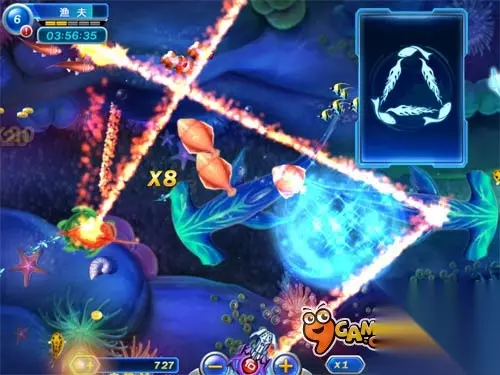 三类武器很强大 工欲善其事必先利其器,鱼友们必须熟悉手里的每一件武器。游戏中共有单筒、双筒两种机枪,其攻击速度快,容易形成火力覆盖区域。虽然发射的子弹看起来十分精致,但是其威力不容小觑,运气好的渔友完全可以用1级的机枪“秒鲨”。接下来,这款单发分值为5分的激光束,其强劲的穿透能力决定了它成为单体攻击的不二选择。分级最多的还数散弹炮。散弹炮爆破时会形成一个圆形区域,其片伤能力毋庸置疑。当鱼友们瞄准小鱼攻击时,非常有可能不经意地捕获大鱼,迎来意外收获。