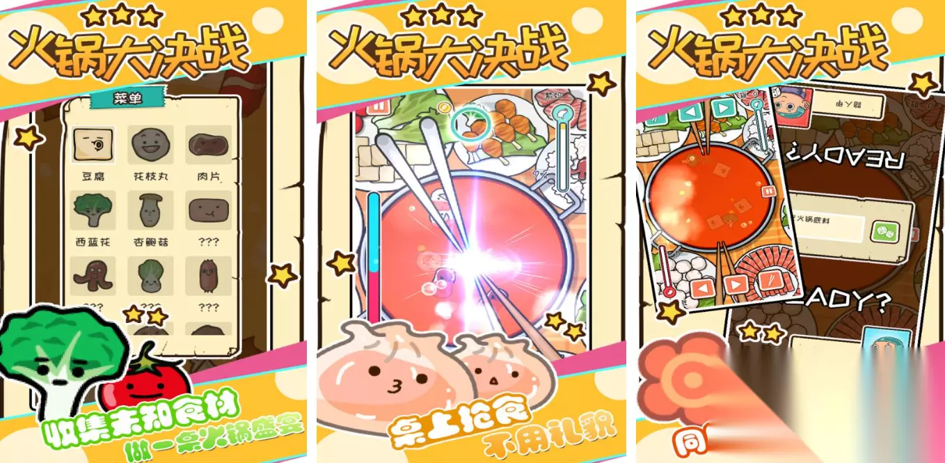 化身为英勇的野蛮人战士,你将通过简便的操作方式,与其他玩家在线上一决高下,秀出你的战斗才华。每局多人对战仅需五分钟,让你快速沉浸在技能随机、场景多变的紧张刺激战斗中。这款游戏融合了英雄对战、轻度竞技等多种元素,你可以挑选心仪的角色,搜集蘑菇来提高等级,最终引领队伍夺取胜利。 扫码下载该游戏 高速下载 普通下载 优先233乐园APP下载 4、《火锅大决战》