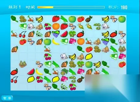 1、注意时间; 大家可以看到进入游戏页面的首先会看到上方有时间的进度条,这就意味着需要在这个时间段内达到过关所需的分值才可以,所以,当你已进入游戏一定要抢时间,先将中间所有同样的水果或蔬菜快速的进行消灭,再四周周边的同样的水果或蔬菜进行消除,在这样操作的同时也需要关注所有尽可能可以消除的其他类型水果或蔬菜,这样第一级别就很容易