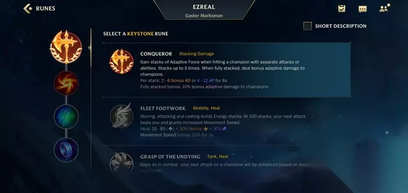 主系天赋选择 主系天赋有两个主流选择,征服者适合追求持续输出的玩家。EZ的技能机制与征服者完美契合,使用技能命中敌人就能快速叠满层数。团战中一个大招命中多个目标后,接QA连招可以瞬间触发征服者效果,配合被动攻速加成能打出爆炸伤害。另一个选择是行窃预兆,这个天赋让EZ在对线期更具压制力。EZ的Q技能射程优势可以频繁触发行窃预兆效果,偷取各种道具能显著提升对线强度,有时甚至能获得救赎这样的强力装备。