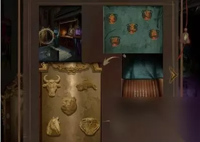 9、按照刚才从阴司哪里获得字谜,对应大殿外面油锅狱石墙上面的字,将兽首调整到下图位置,获得忠字木牌。