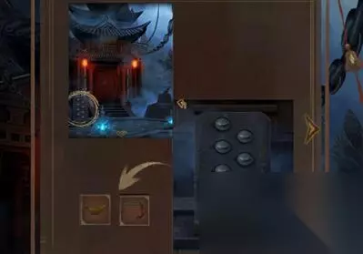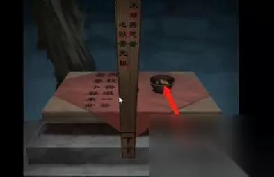 16、使用钥匙打开供养阁大门,进入供养阁,来到正前方的阴火魂灯前面,根据火焰的反方向点击按钮获得阴火魂灯。17、继续点击右边桌子将阴火魂灯放在火盆里面点燃,之后将金元宝放入,获得柳树枝条。