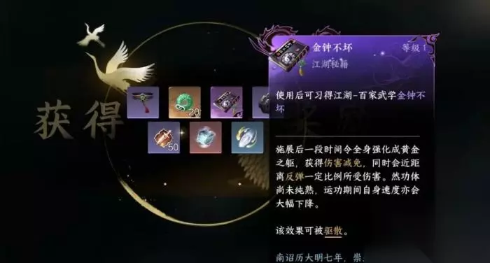 【破阵之芒】 技能介绍:用于启动/关闭路上遇见的阵法,探索寻宝必备。 获取方式:前往坐标点(1312, 1263)风车处,使用【风起云涌】激活风车,解决谜题后即可获得。 【金钟不坏】 技能介绍:PVP神技,释放后持续时间内可获得减伤和反伤效果。 获取方式:先找到桃溪村的山洞(1053,1224),用【烈火燎原】烧掉洞门藤蔓后往前走,再击败前方的野猪王(需要顺带把洞里的点灯任务做了才会出现大宝箱)。