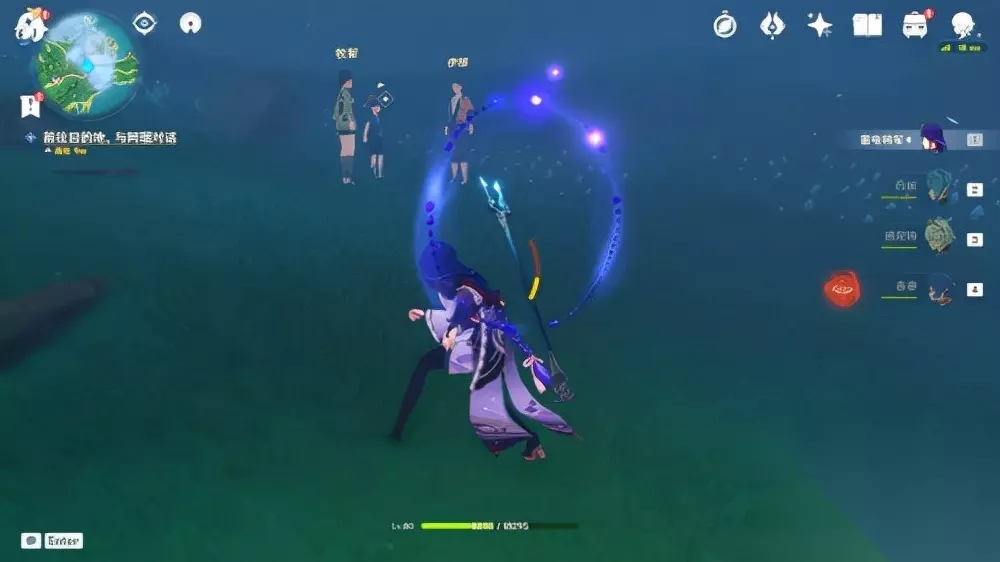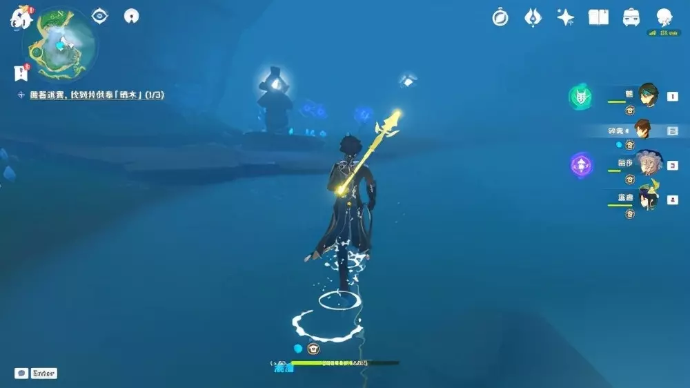 注意阿瑠小朋友身边的仙灵机关,找到三个仙灵后水位会下降。