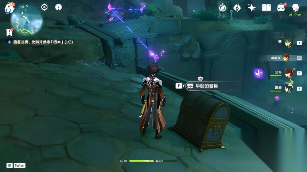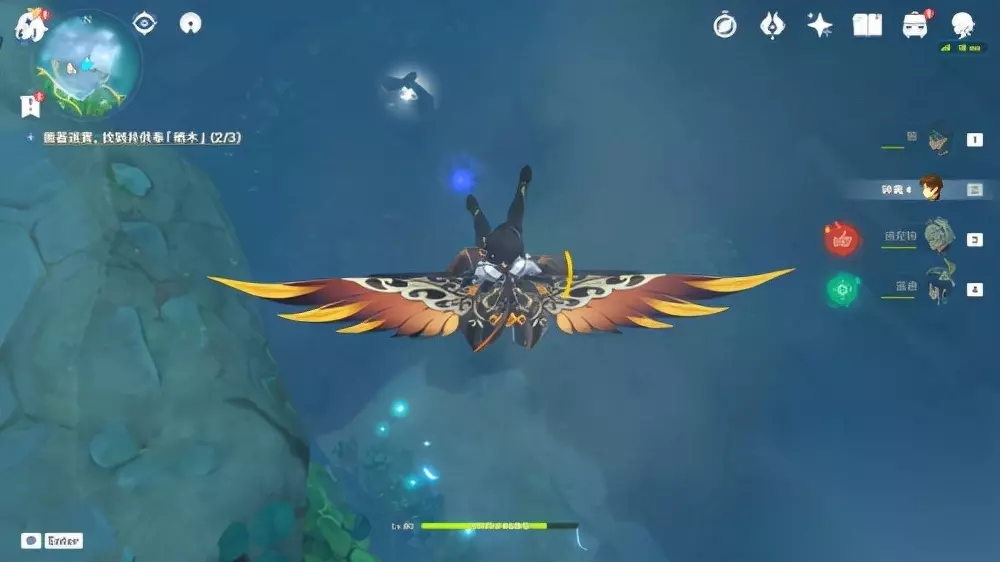 进入后,会发现第三个羽毛。 值得一提的是,第二处羽毛旁有三个仙灵,指引回去后,可以获得成就【深雾引路人】。