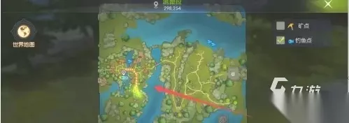 随后就能解锁钓鱼技能,获取所需要的渔具了,在有了渔具后就可以开始第二步寻找垂钓点位了,这点位可以通过生活玩法中的搜寻钓鱼点去找,在搜寻之后就小地图上就会显示黄圈范围。