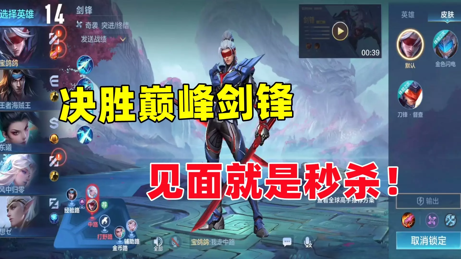 这是MOBA手游《决胜巅峰》的游戏内容,展示了英雄剑锋的实战操作,剑锋操作流畅、数值表现出色,视频呈现了其打野、参与团战等对局过程,还提及了技能CD、对局思路等内容。