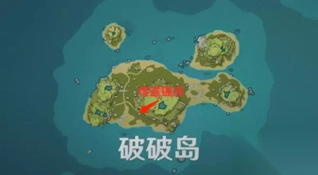 第1处壁画:破破岛的壁画 破破岛传送锚点处的西南方向,箭头所在处位于该处山体最低处的山洞��; 未解锁山洞需要先使用羽球打破墙壁