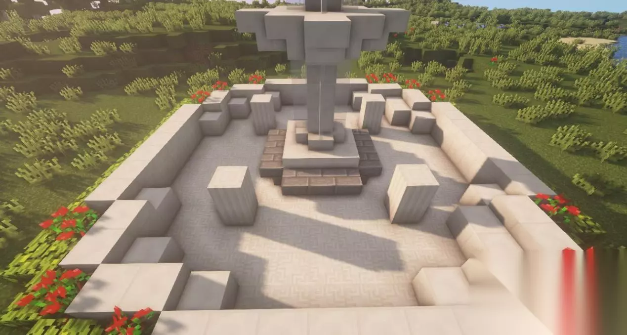 三、装饰/水流 用末地烛在喷泉周围做装饰。