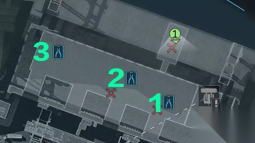 作为优先启动任务,此处炸弹集中在大坝内部,地形相对封闭,适合快速突破。1. 1号炸弹:贴于地下金库外侧的蓝色装置上,拆弹时从左侧红点标记处沿线路轨迹定位,找到右侧匹配的钳子图标点击即可。即使误操作扣除10秒倒计时也无需恐慌,炸弹不会爆炸,可重新尝试。