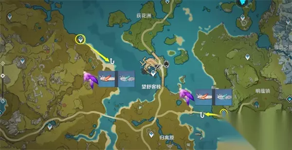 4、钓鱼点。 ①望风山地、低语森林、清泉镇