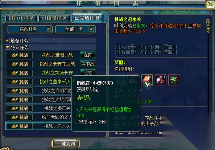 技巧一——任务原则 只做两类任务 当前副本的主线任务(最短通关路径上的) 挑战任务(大量经验及升级道具)
