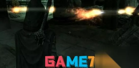 5.往前要保持潜行,否则会引来一群矮人机械球的围击。 6.来到如图场景,地上有很多旋转火焰的装置,要利用火焰的闪隙潜行过去,一直到达大厅的另一边。