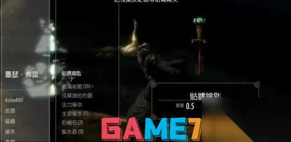25.在这里看到墨瑟正爬到一尊巨大塑像上,撬下伐莫族之眼。 26.墨瑟不肯交出骷髅钥匙,只好与之对战。 27.将他击杀后,搜索尸体拿到伐莫族之眼和骷髅钥匙。
