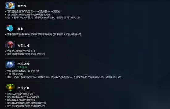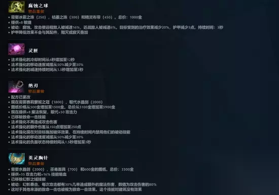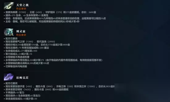 新增装备——冰霜之珠: 效果:可对敌人施加减速,同时降低目标的治疗效果。 用途:作为斯嘉蒂之眼的新配方之一,进一步增强减疗与减速效果。 重做道具:天堂之戟、缚灵索、腐蚀之球、绝刃、英灵胸针等多件装备迎来重制,机制与属性全面调整,带来更多战术变化。