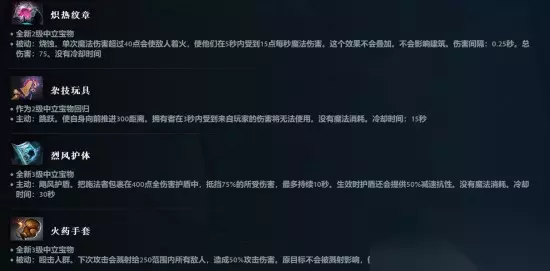 中立物品机制优化:宝物+附魔 新版中立物品分为宝物和附魔两部分: 宝物:决定物品的技能(可为主动或被动) 附魔:赋予英雄额外的被动属性和状态