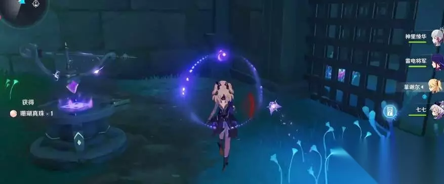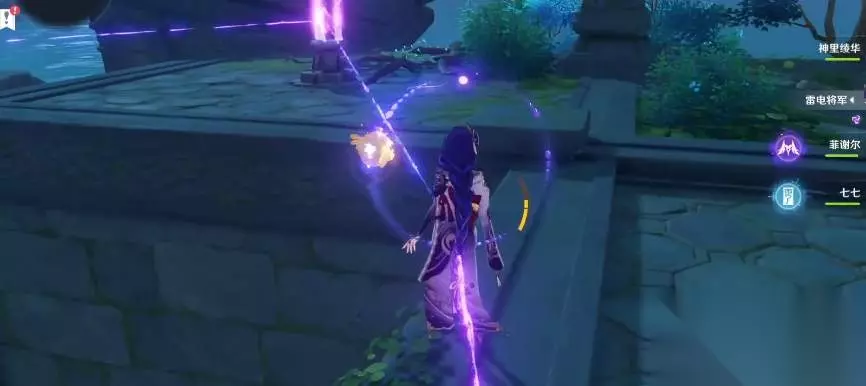 3、出门后继续往宝箱后方走,左右各有一个雷柱,顺序先右后左。