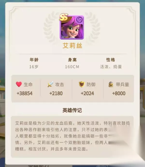 2、基础属性基础属性关系到三消战斗中对应元素珠的消除伤害、主动技能的伤害,受击时的防御力和生命值;带兵量关系到军团士兵出征数量。可通过升级和升阶进行提升,升阶消耗对应英雄碎片,可通过召唤阵、各大商店与活动获取,不同英雄的获取渠道存在差异。也可用对应品质的万能碎片进行转化,不过万难碎片获取不易,切勿浪费在过渡英雄身上,特别是SS级万能碎片,尽量给到阵容核心英雄。