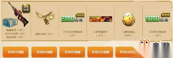 活动时间:2017年12月5—2017年12月27 一.签到领好礼 签到三次、六次、九次、十一次、十四次、十七次便能领取奖励。