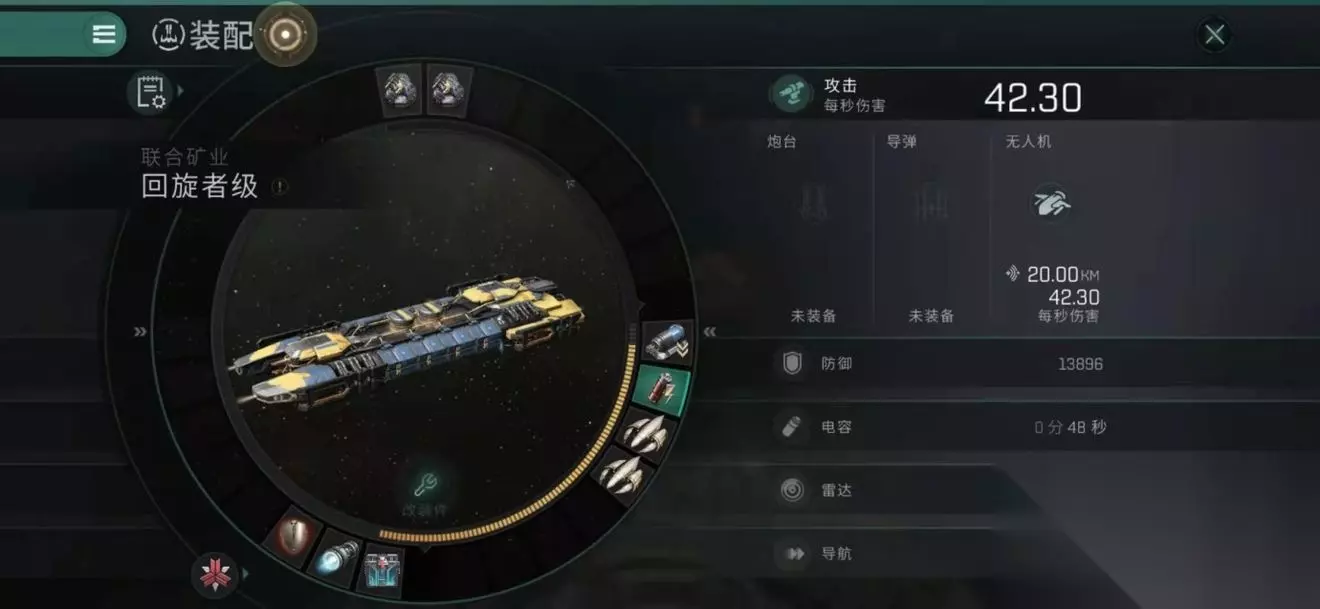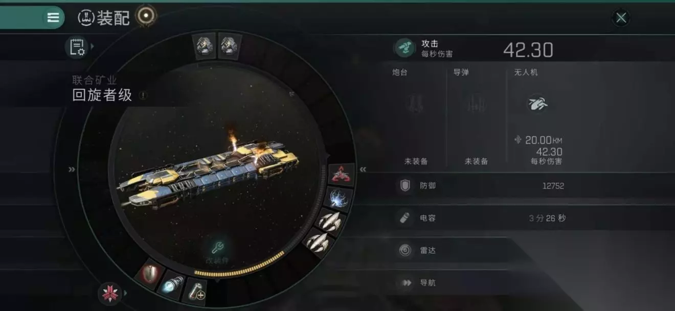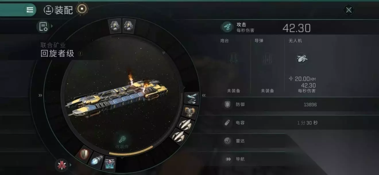 辅助型:一般跟主动型配置回旋一起挖矿才有实际效果。通常是为主动型配置回旋提供电量支援或为敌舰“提供”更多非必要牵制型Debuff例如信号标志和网子。配置为底槽跃迁加速器,电池,红盾。中槽则视主动型回旋配置和需求进行适当调整,例如远程电容传输装置,网子等。(不推荐远程护盾维修器和远程装甲维修器,因为这两个都是占用高槽,十分影响挖矿效率)