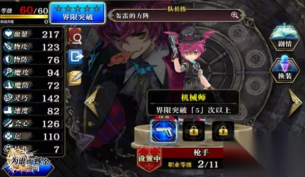 角色共有25次突破, [突破5]时解锁第二个职业。 [突破10]时解锁第二个武具槽。 [突破15]时解锁第三个职业。 [突破20]时解锁个人故事(如果有的话),通关可以获得“精通技能”。 [突破25]时解锁第三个武具槽。