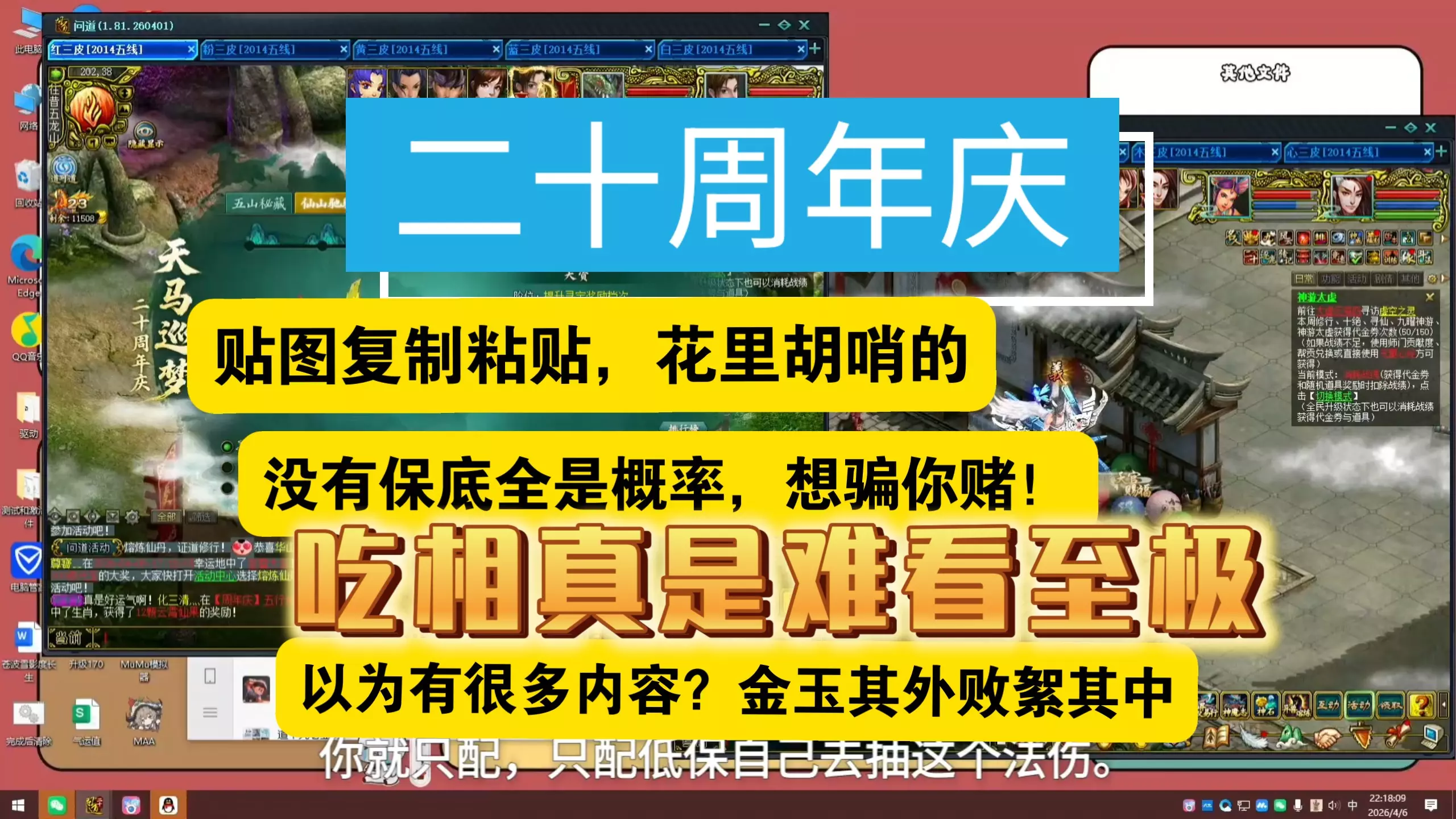这是《问道》经典服二十周年庆活动玩法展示,呈现了“天马巡梦”活动内容,玩家可养成天马,提升其天资属性,还能进入仙山探索获取奖励,同时还有野外杀怪等日常玩法。