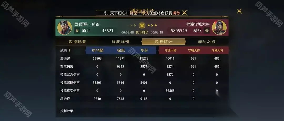 2、然后的徐庶的搭配 很多人不懂为什么不带能放毒的张春华要带徐庶,其实徐庶也能放毒,虽然概率不高,但是有侵蚀这个紫技能稳定放毒后,徐庶这个概率放毒也是可以接受的,毕竟他还能持续的加血,而且加血量不低。这样可以极大程度的保证你的队伍可以站的更久,毕竟活得越久输出才能越多,只有站的住才能吃的开。