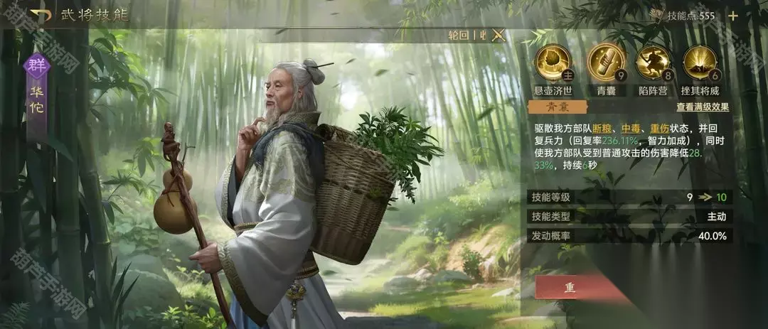 3、最后搭配上华佗 也不仅仅是因为他能加血,毕竟加血的英雄还是毕竟多的,还是因为他的加血技能奶量特别充足,而且还能驱散控制,可以驱散断粮这种针对性特别强的技能,毕竟奶量再足如果被禁疗了 一切都等于0,所以试来试去,华佗小编觉得还是这个奶毒盾最合适的一员。
