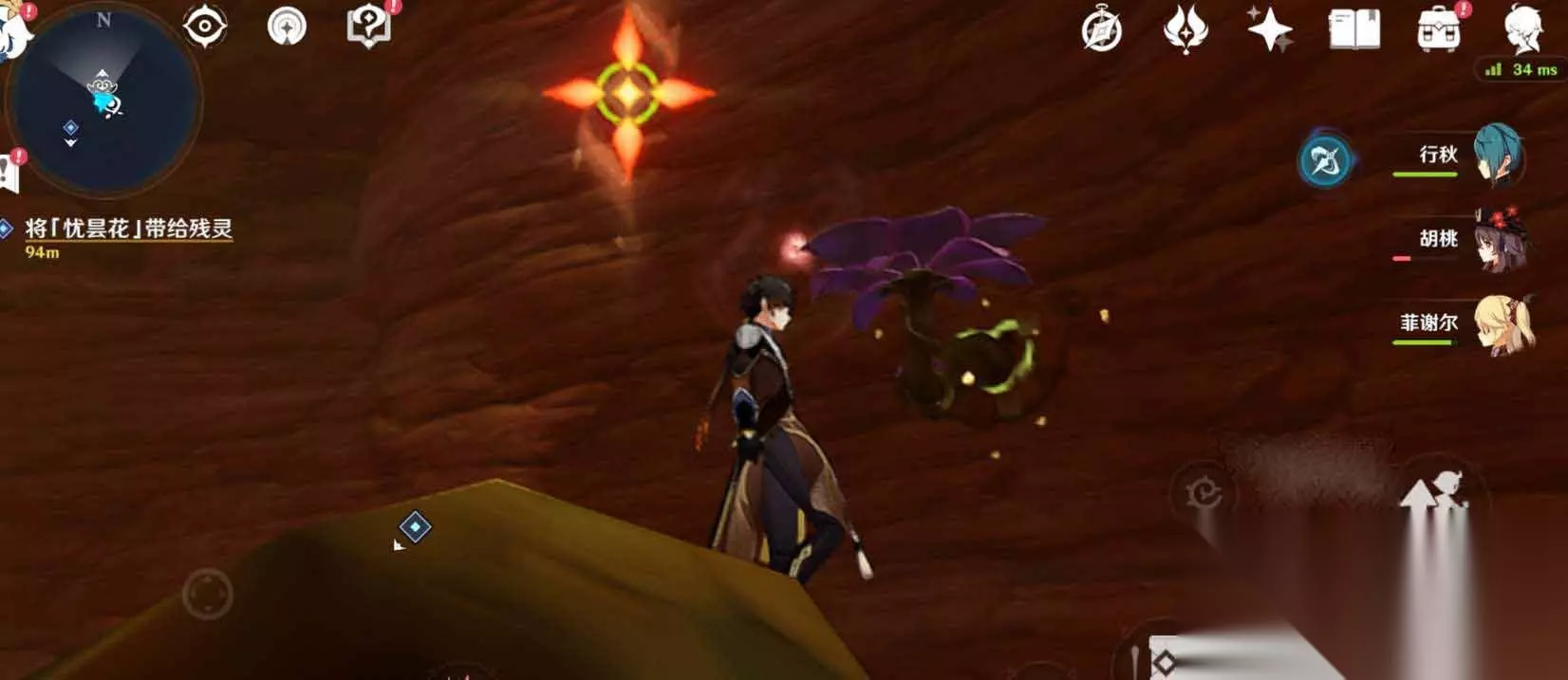 2、忧昙花一共有6个,所在位置如下图所示,大家可以参考下图寻找对应的岩壁然后进行采集;