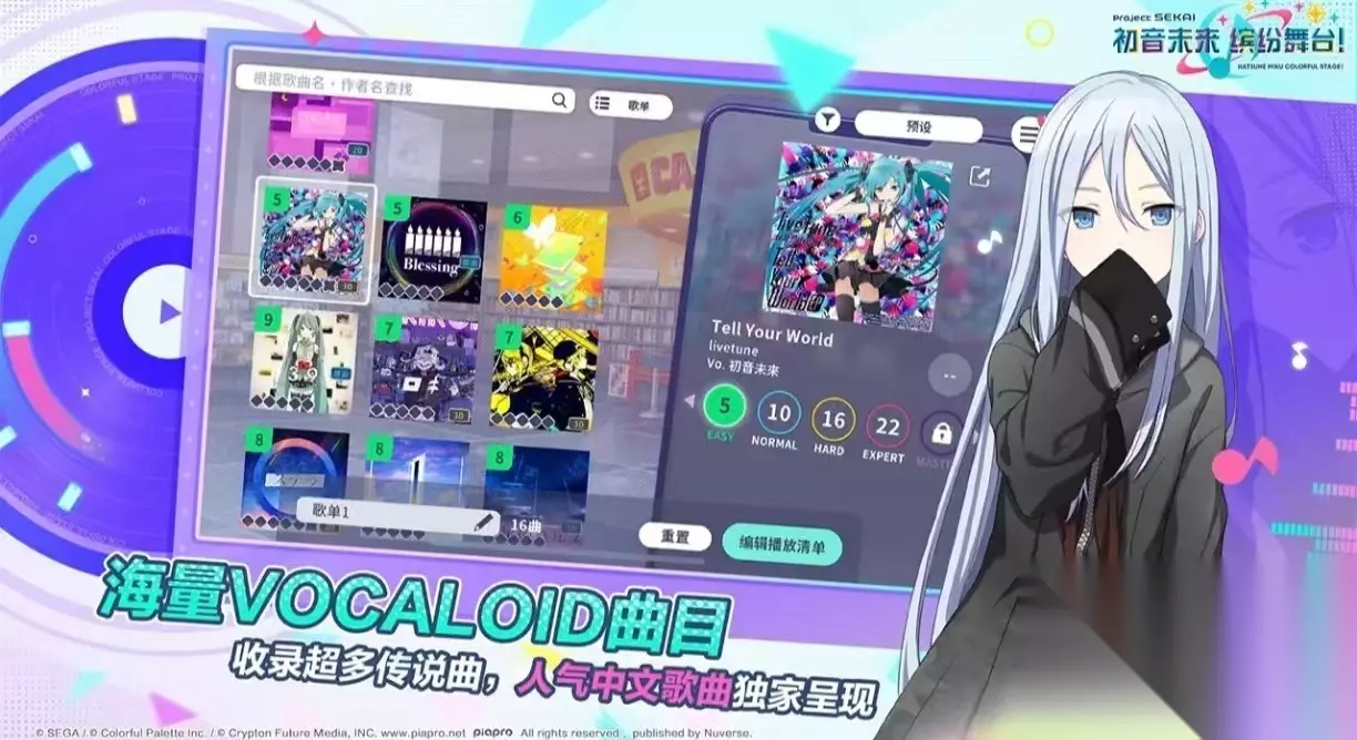 《一梦江湖》游戏以武侠小说作为背景,可以选择加入游戏中的五大门派,角色可以自由的进行养成,图中的面积非常的广阔,玩家可以在地图中的任意地点进行探险。角色可以自由解锁不同的古代生活方式,所饰演的人物还可以自由的捏脸,可以自由打造一个独一无二的形象,剧情中需要玩家做出许多的选择,每一个选择将进入不同的结局中,可以当成一个真实的古代江湖世界。 扫码下载该游戏 高速下载 普通下载 优先233乐园APP下载 4、《初音未来缤纷舞台》