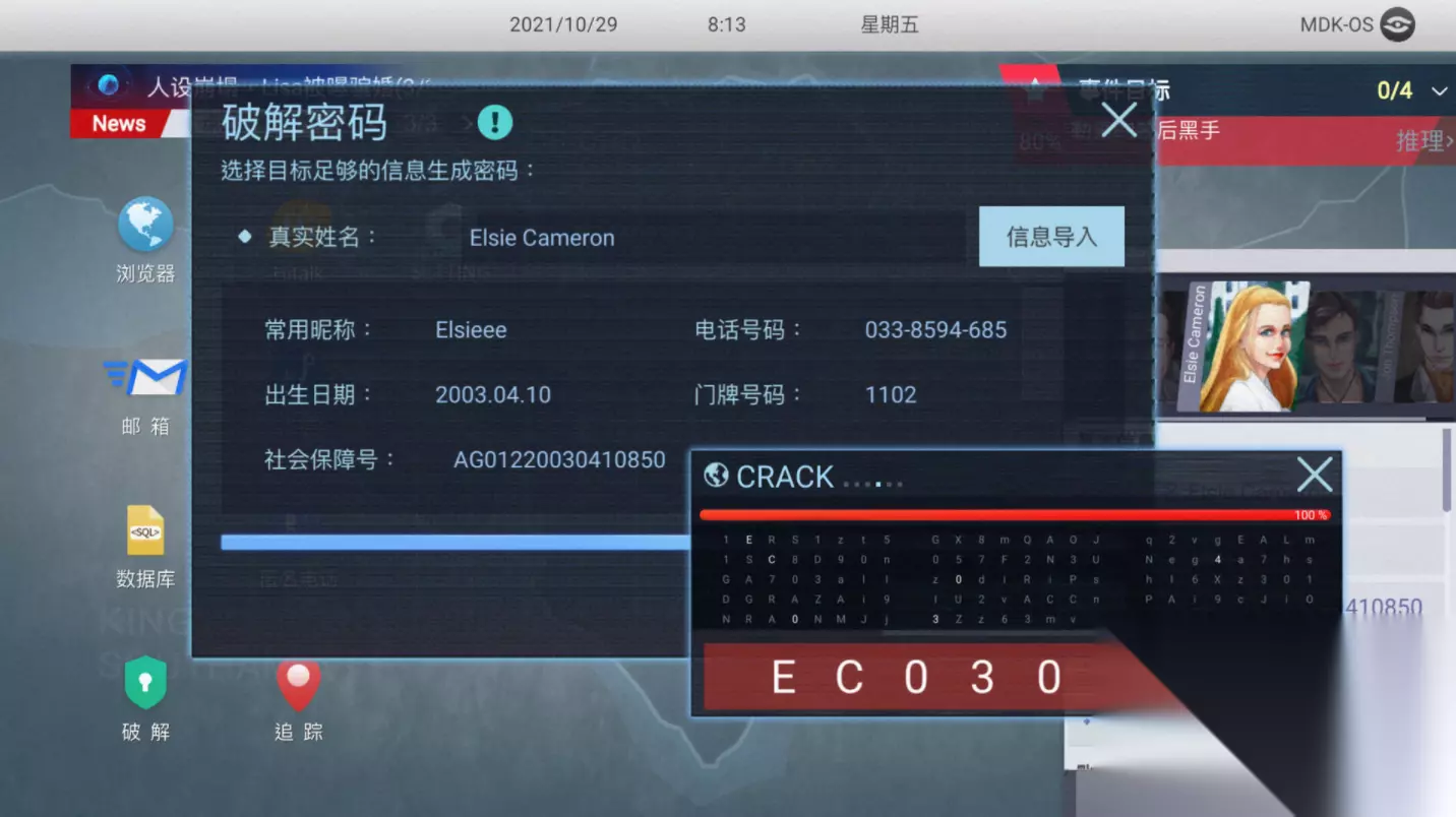 第四章从开始也是与前几章相同,我们首先会接到Ashley给我们打来的电话发布了一个任务,接着我们肯定是需要接下这个任务的,我们可以了解到这次任务的主角是一个叫做Barbie Saya的人,打开toothbook搜索名字收集信息,可以在主页看到Coral Stock有关于的信息以及一串数字编号还有信息关于财务专员和一串时间线索以及Deathon your way。