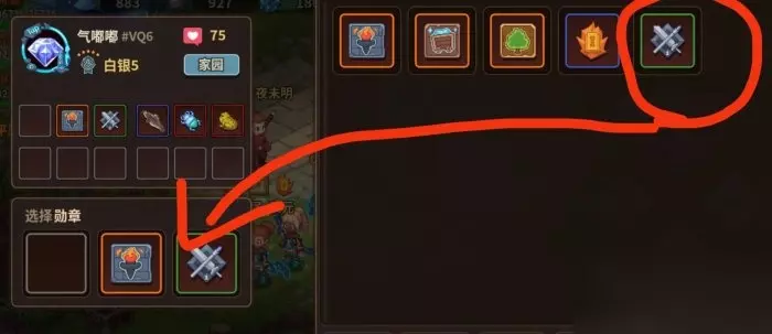 首先已知我们佩戴了三个勋章 选择其中一个佩戴了的勋章拖到其他位置,那么它原先的位置就会空缺出来,就减少了一个勋章