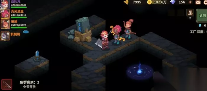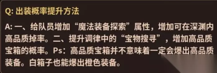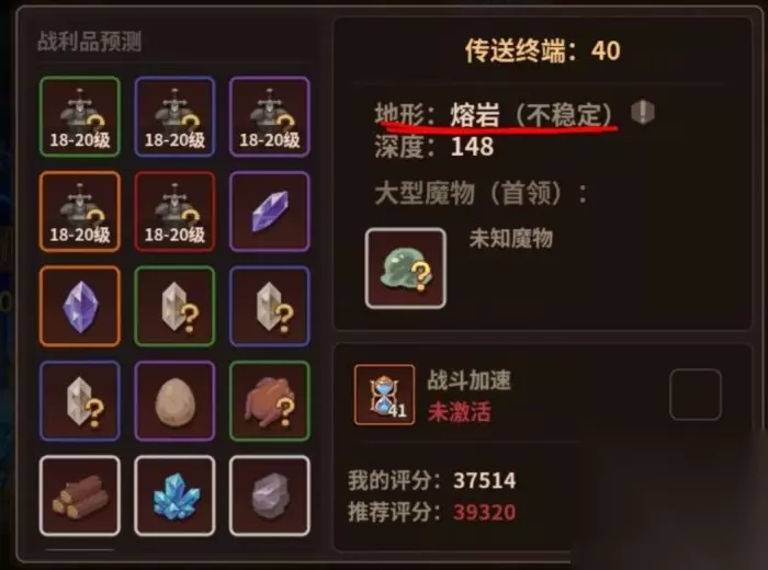 ❈深渊:主要装备,金币,宠物蛋等物质来源(提升队员魔法物品获取可提升,宠物蛋,宝石等高品质物品爆率,提升魔法装备获取可提升装备爆率,提升金币爆率可获得更多金币,推图推不下去了,就试试好奇套反复刷图吧,高品质装备和宝石加成还是很可观的,运气好的话宠物蛋还可能爆出红宠) 选择进入的终端可以看到当前层数的地形,刷钓鱼点必看,这里需要注意,每个终端的地形不是固定,能进入又马上退出刷新当前层数的地形,普通终端也有几率出现特殊地形,像猩红的深渊之类的(打个比方:想刷40层地牢钓鱼点,但是此时40层不是地牢是平原,就可以先进平原地图,再马上返回营地,然后再看40层地图就可能变成了地牢地形)
