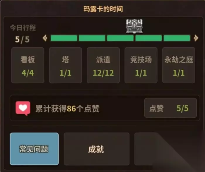 每天做满三个任务,就可以得到精细的轮回之砂(拟态怪商店兑换用);也可以查看图鉴;成就,成就可以获得钻石和勋章;常见问题,萌新不知道的问题都可以里面找找