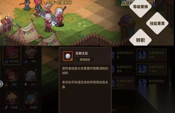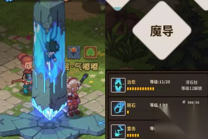 最下图左边显示着已有食材数量 2.需要石头升级的场所:铁匠铺、仓库、魔导技 魔导技>铁匠铺>仓库 ◆魔导技 对战时手动释放的技能,就是到下图这个装着人的蓝色柱子处升级技能,推荐升级治愈,标记,鼓舞,雷击(可打断有些boss技能)