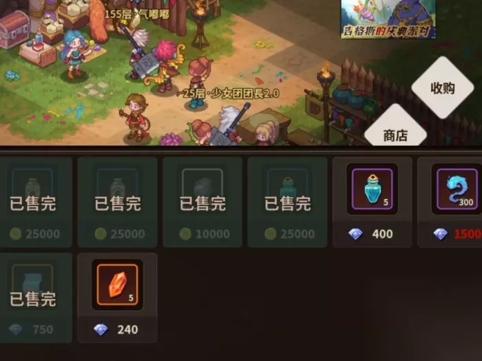 4.营地商人 商人是左上角蓝色头发的这位 商店:每日随机刷新商品,金币有用建议都买了,有时候能刷金币买钻石,很划得来,刷出卡片抽奖券也买了,钻石商品看情况买