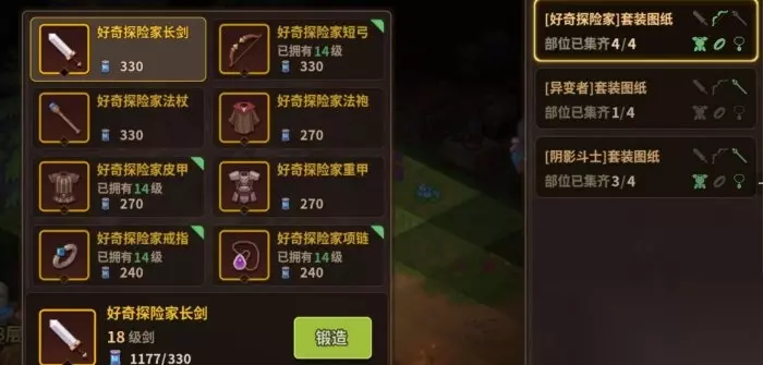 ❈套装:打造需要概念构成体,好奇套用来刷金币很好使,可以备着一套,推图就不要用好奇套了,推不动图的时候可以穿着刷秘境,攒金币刷装备宝石宠物蛋啥的,套装图纸永劫之庭有概率获得(概念构成体获得途径:永劫之庭、竞技荣耀商店兑换、商店套装回收)