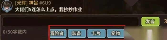 分为世界频道和联盟频道,可以在聊天公屏上展示得到的装备、人物、卡牌、宠物 可以多看看公屏上大佬发的人物展示,学习他们如何点技能分支,带卡牌,装备的 六、套装推荐(★为职业专属) 装备一般为1+3(一件3孔红装,三件套装,一般套装部位为戒指衣服项链),或者2+2(两件3孔红装和两件套,一般套装部位为衣服项链) 战士 旋风斩:莉莉丝★ 盾:莫古力、幻觉 裂地斩:古德露恩★、莫古力、幻觉 嘲讽:莫古力、幻觉 跳跃斩:莫古力、幻觉 射手 急速:禁锢、残酷天使 多重:贝理撒★、禁锢、残酷天使 五连射:黑暗游侠★、禁锢、残酷天使 毒箭:弗克狄德、禁锢、残酷天使 召唤宠物:古托姆★ 法师 治疗术:阴影斗士、残酷天使 火焰爆轰:燃烧之地★、弗克狄德 火球连弹:熔岩★、燃烧之地、弗克狄德 召唤火蛇:沃特恩★、弗克狄德、燃烧之地 冰箭:玛露卡★、弗克狄德 所有职业:异变者(生命恢复效果提升)、精巧(减伤减抗)、阴影斗士(狂暴+暴击)、好奇(刷金和物资神装)、残酷天使(暴击爆伤) 八、前期钻石用法: 前期主要用来抽卡,去游戏商城里买抽卡券,1600钻石10个,可以买5次,每月刷新,一共就是8000钻石;游戏商城每周2次800钻石的木头也可以买;其次就是营地商店每日刷新的钻石商品,有抽卡券、木头就买,没有就看刷出来的商品,像宝石,金红宠物蛋,卡牌升级材料什么的有需要也可以买;还有就是用来深渊打秘境买50钻石的小浮石,和买背包格子,钻石不多格子可以先开到200钻石那一栏,多的话开到350钻石