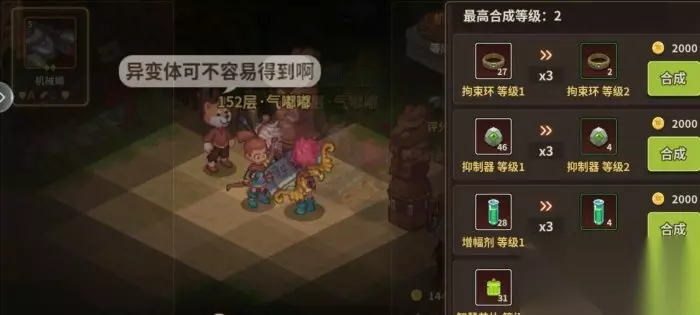 ❈异变体合成:就是宠物装备,等级上限随着宠物栏等级上升,后期合成需要花费很多金币,三级合成四级就要1w